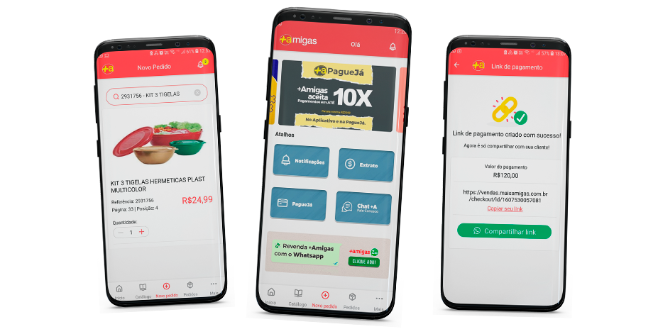 O seu Distribuidor irá lhe entregar um catálogo, mas você também pode baixar nosso catálogo virtual aqui no site da +Amigas, clicando em “Catálogos” no menu principal, ou pelo link: maisamigas.com.br/zap.